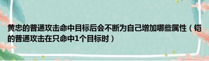 黄忠的普通攻击命中目标后会不断为自己增加哪些属性(铠的普通攻击在只命中1个目标时)