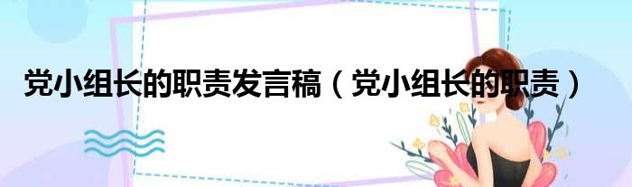 1、党小组长的职责是:组织好党员的学习;2、组织党员贯彻执行支部的决议和上级指示,分配党员的工作,指导党员的活动;3、按时召集和主持好党小组会,严格党的组织生活;4、做好党员的思想政治工作,及时向党支部反应本小组的情况;5、组织党员做群众工作,及时反映群众的要求和意见;6、协助党支部做好接收新党员和对预备党员的教育考察工作;7、协助党支部做好评议党员和收缴党费工作;8、认真执行党小组的各项制度,开展党小组的各项活动;9、适时总结本小组的工作。