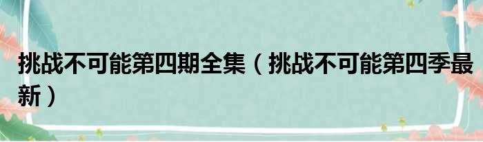 挑战不可能第四期全集(挑战不可能第四季最新)