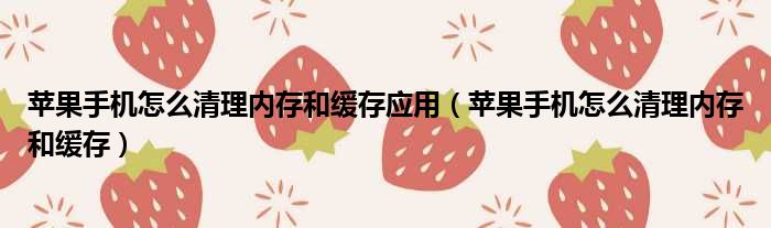 苹果手机怎么清理内存和缓存应用(苹果手机怎么清理内存和缓存)