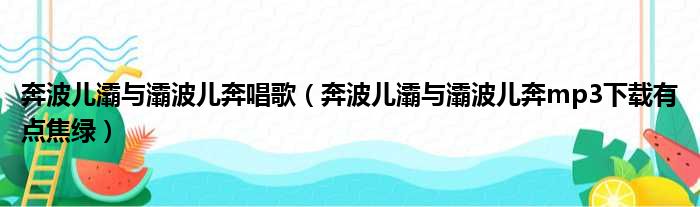 奔波儿灞与灞波儿奔唱歌(奔波儿灞与灞波儿奔mp3下载有点焦绿)