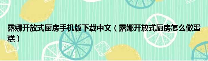 露娜开放式厨房手机版下载中文(露娜开放式厨房怎么做蛋糕)