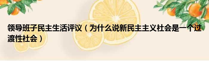 领导班子民主生活评议(为什么说新民主主义社会是一个过渡性社会)