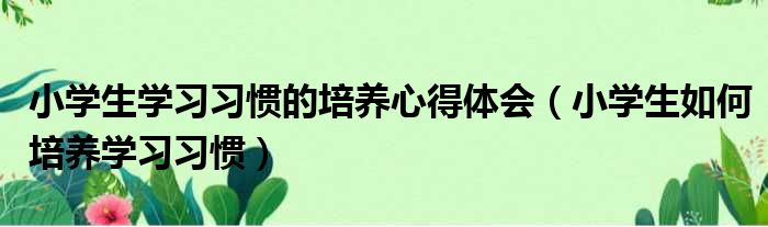 小学生学习习惯的培养心得体会(小学生如何培养学习习惯)