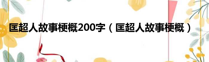 大家好,小东方来为大家解答以上的问题。匡超人故事梗概200字,匡超人故事梗概这个很多人还不知道,现在让我们一起来看看吧!