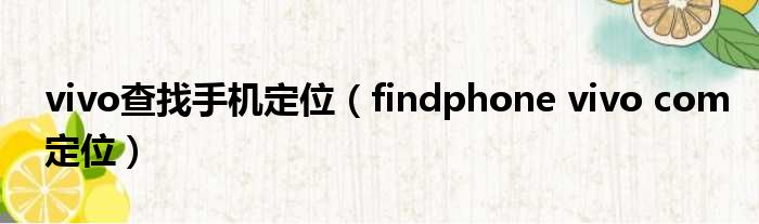 vivo查找手机定位(findphone vivo com定位)