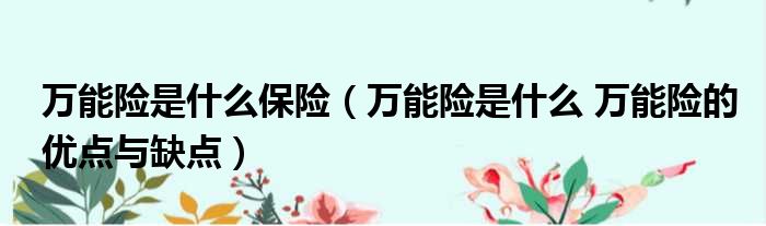 万能险是什么保险(万能险是什么 万能险的优点与缺点)