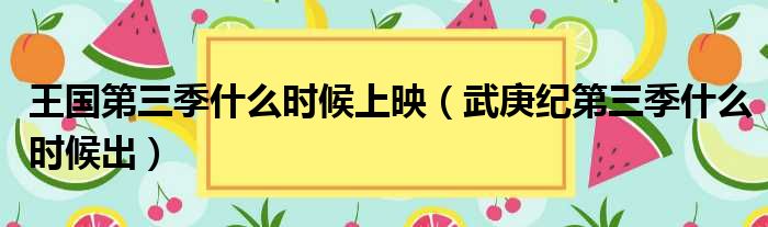 大家好,小东方来为大家解答以上的问题。王国第三季什么时候上映,武庚纪第三季什么时候出这个很多人还不知道,现在让我们一起来看看吧!