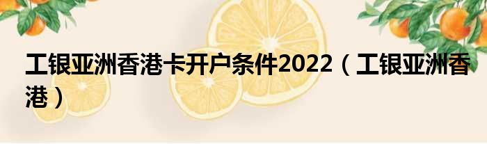 工银亚洲香港卡开户条件2022(工银亚洲香港)