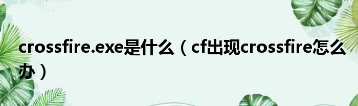 crossfire.exe是什么(cf出现crossfire怎么办)