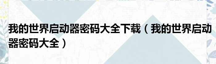 我的世界启动器密码大全下载(我的世界启动器密码大全)