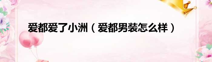 大家好,小东方来为大家解答以上的问题。爱都爱了小洲,爱都男装怎么样这个很多人还不知道,现在让我们一起来看看吧!