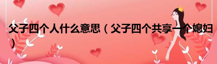 大家好,小东方来为大家解答以上的问题。父子四个人什么意思,父子四个共享一个媳妇这个很多人还不知道,现在让我们一起来看看吧!