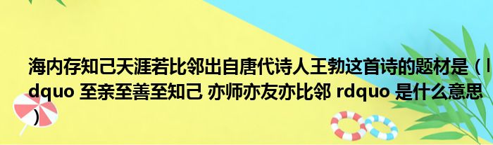 海内存知己天涯若比邻出自唐代诗人王勃这首诗的题材是(ldquo 至亲至善至知己 亦师亦友亦比邻 rdquo 是什么意思)