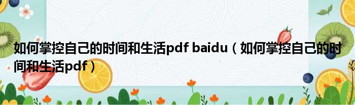 如何掌控自己的时间和生活pdf baidu(如何掌控自己的时间和生活pdf)