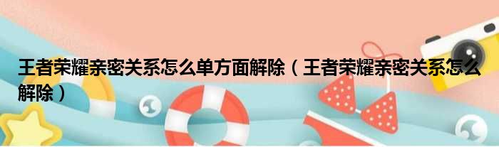 王者荣耀亲密关系怎么单方面解除(王者荣耀亲密关系怎么解除)