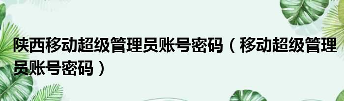 陕西移动超级管理员账号密码(移动超级管理员账号密码)