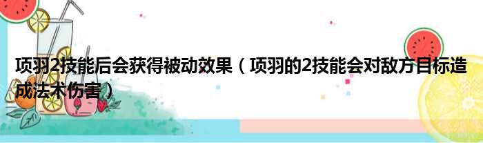 项羽2技能后会获得被动效果(项羽的2技能会对敌方目标造成法术伤害)