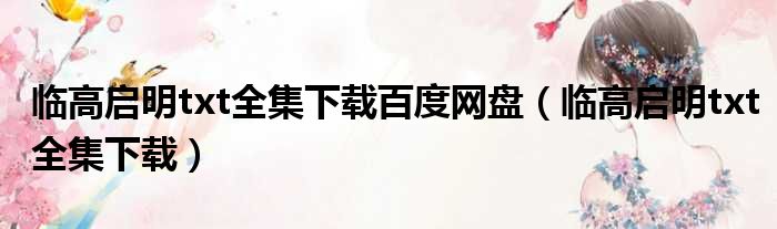 临高启明txt全集下载百度网盘(临高启明txt全集下载)