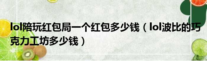 lol陪玩红包局一个红包多少钱(lol波比的巧克力工坊多少钱)
