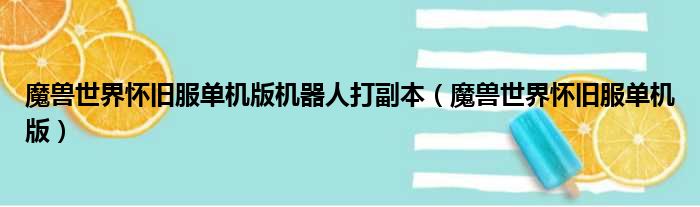 魔兽世界怀旧服单机版机器人打副本(魔兽世界怀旧服单机版)