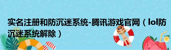 实名注册和防沉迷系统-腾讯游戏官网(lol防沉迷系统解除)