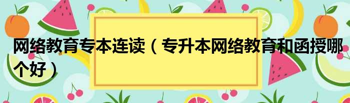 网络教育专本连读(专升本网络教育和函授哪个好)