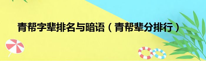 大家好,小东方来为大家解答以上的问题。青帮字辈排名与暗语,青帮辈分排行这个很多人还不知道,现在让我们一起来看看吧!
