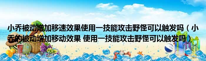小乔被动增加移速效果使用一技能攻击野怪可以触发吗(小乔的被动增加移动效果 使用一技能攻击野怪可以触发吗)
