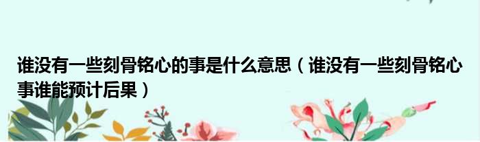 谁没有一些刻骨铭心的事是什么意思(谁没有一些刻骨铭心事谁能预计后果)
