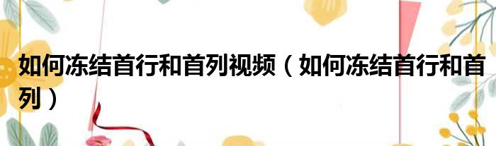 如何冻结首行和首列视频(如何冻结首行和首列)
