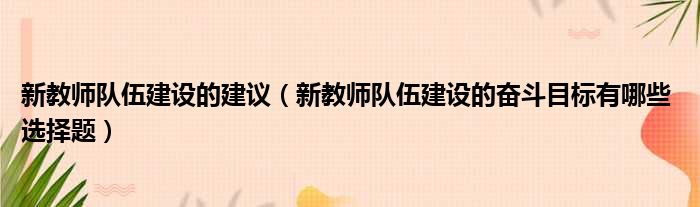 新教师队伍建设的建议(新教师队伍建设的奋斗目标有哪些 选择题)