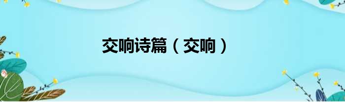 大家好,小东方来为大家解答以上的问题。交响诗篇,交响这个很多人还不知道,现在让我们一起来看看吧!