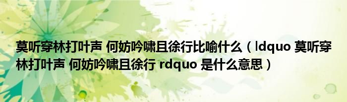 莫听穿林打叶声 何妨吟啸且徐行比喻什么(ldquo 莫听穿林打叶声 何妨吟啸且徐行 rdquo 是什么意思)