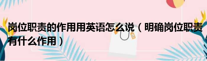 岗位职责的作用用英语怎么说(明确岗位职责有什么作用)