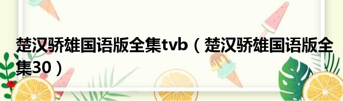 大家好,小东方来为大家解答以上的问题。楚汉骄雄国语版全集tvb,楚汉骄雄国语版全集30这个很多人还不知道,现在让我们一起来看看吧!