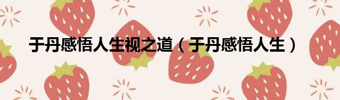 大家好,小东方来为大家解答以上的问题。于丹感悟人生视之道,于丹感悟人生这个很多人还不知道,现在让我们一起来看看吧!