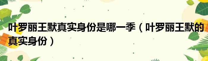 叶罗丽王默真实身份是哪一季(叶罗丽王默的真实身份)