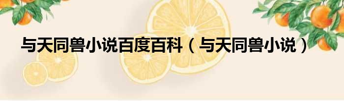 大家好,小东方来为大家解答以上的问题。与天同兽小说百度百科,与天同兽小说这个很多人还不知道,现在让我们一起来看看吧!