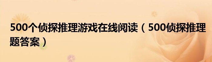 500个侦探推理游戏在线阅读(500侦探推理题答案)