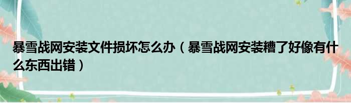暴雪战网安装文件损坏怎么办(暴雪战网安装糟了好像有什么东西出错)