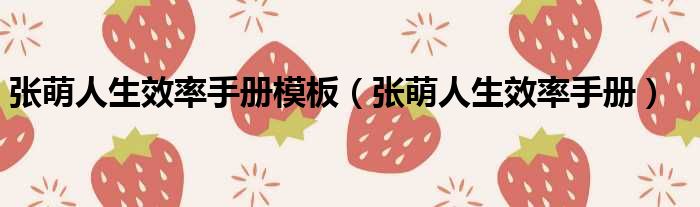 大家好,小东方来为大家解答以上的问题。张萌人生效率手册模板,张萌人生效率手册这个很多人还不知道,现在让我们一起来看看吧!