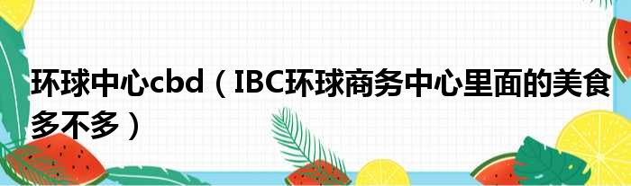 环球中心cbd(IBC环球商务中心里面的美食多不多)