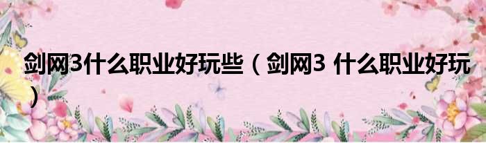 剑网3什么职业好玩些(剑网3 什么职业好玩)