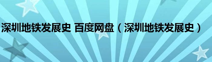 深圳地铁发展史 百度网盘(深圳地铁发展史)