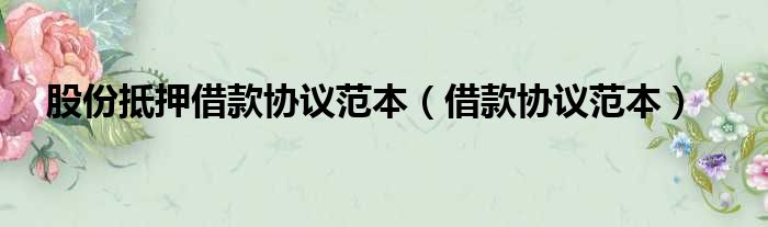 大家好,小东方来为大家解答以上的问题。股份抵押借款协议范本,借款协议范本这个很多人还不知道,现在让我们一起来看看吧!