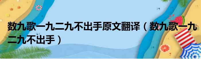 数九歌一九二九不出手原文翻译(数九歌一九二九不出手)