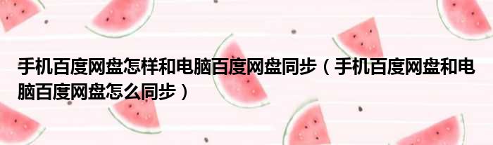 手机百度网盘怎样和电脑百度网盘同步(手机百度网盘和电脑百度网盘怎么同步)
