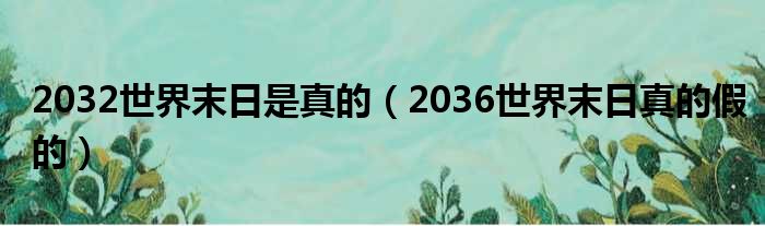 大家好,小东方来为大家解答以上的问题。2032世界末日是真的,2036世界末日真的假的这个很多人还不知道,现在让我们一起来看看吧!