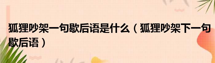 狐狸吵架一句歇后语是什么(狐狸吵架下一句歇后语)